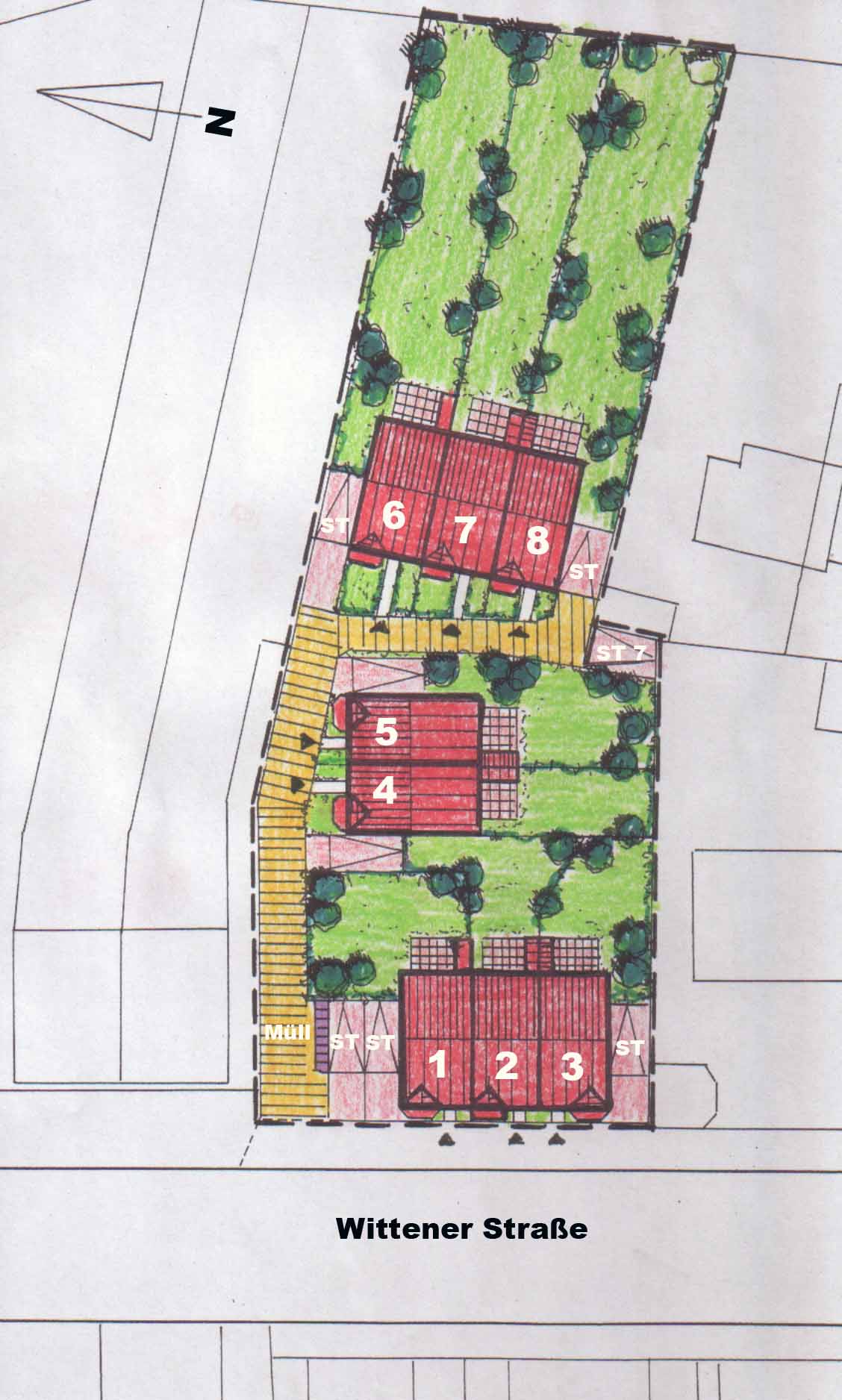 Gartenansicht Häuser 5 - 7