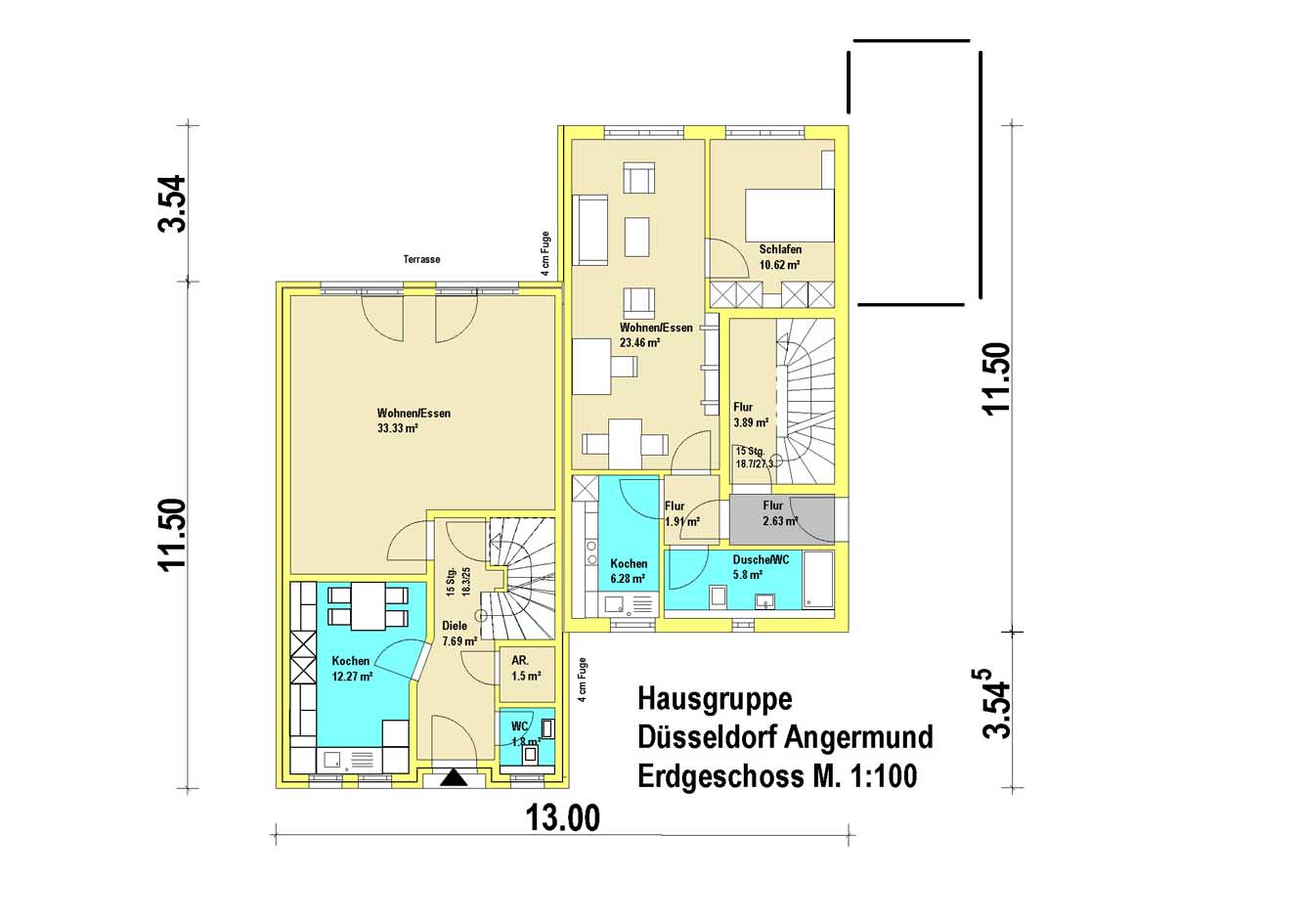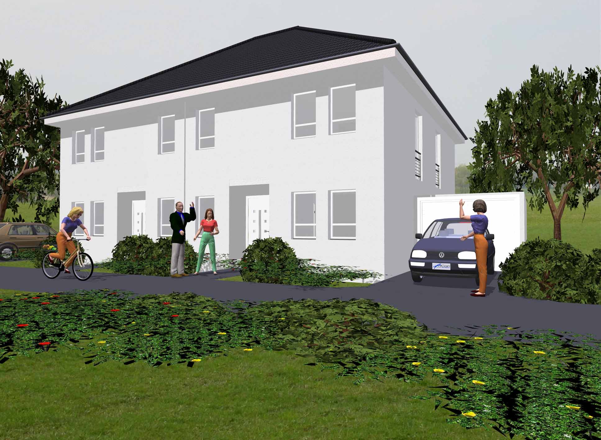 Typ C entspricht der kassischen Doppelhaushälfte bzw. dem typischen Reihenhaus.
