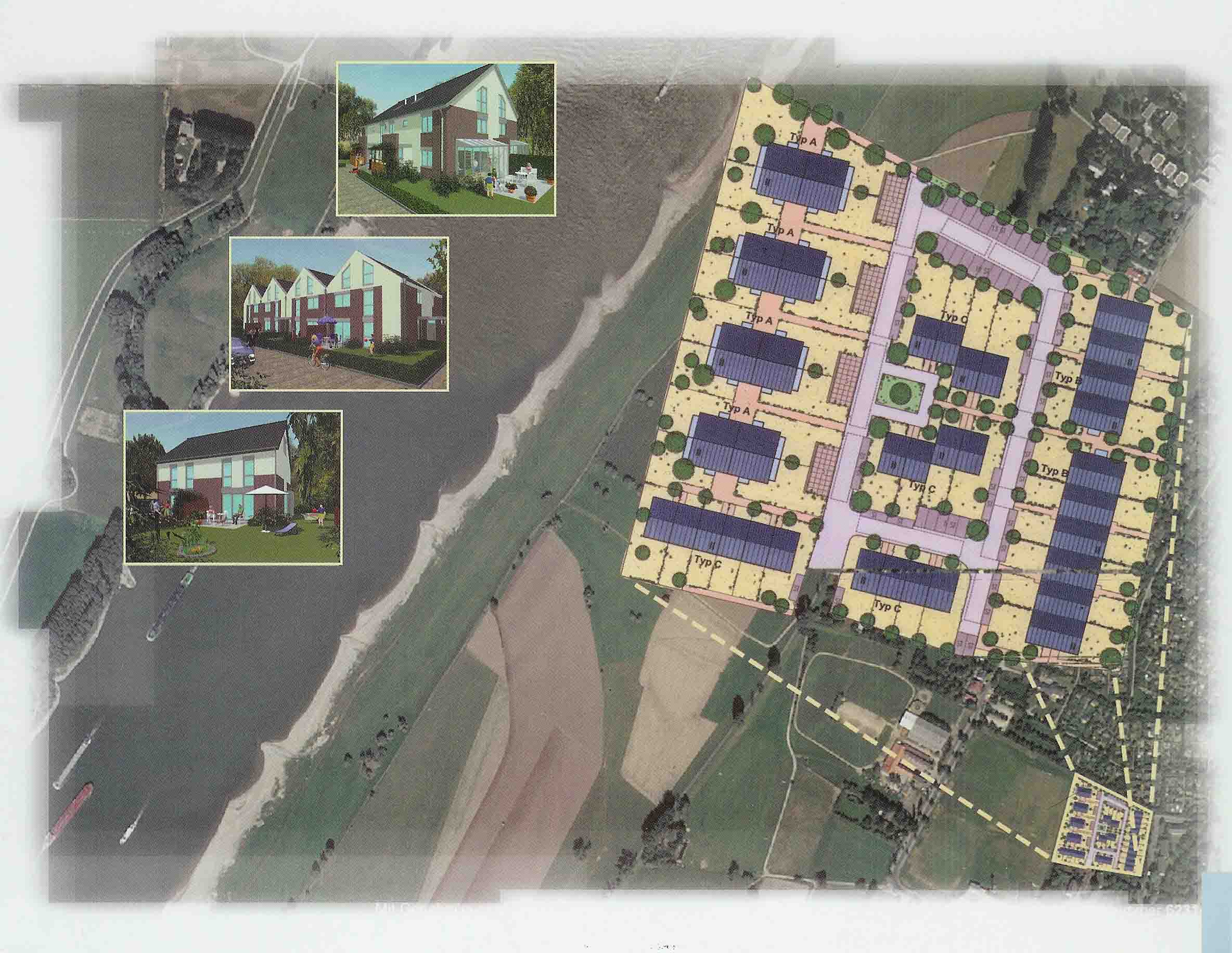 Typ A ist an ehemalige Werkswohnungstypen angelehnt. Typ B ist im Kern eine Eigentumswohnanlage, bei der zwei Wohnungen Rücken an Rücken in einem giebelständigen Gebäudeteil