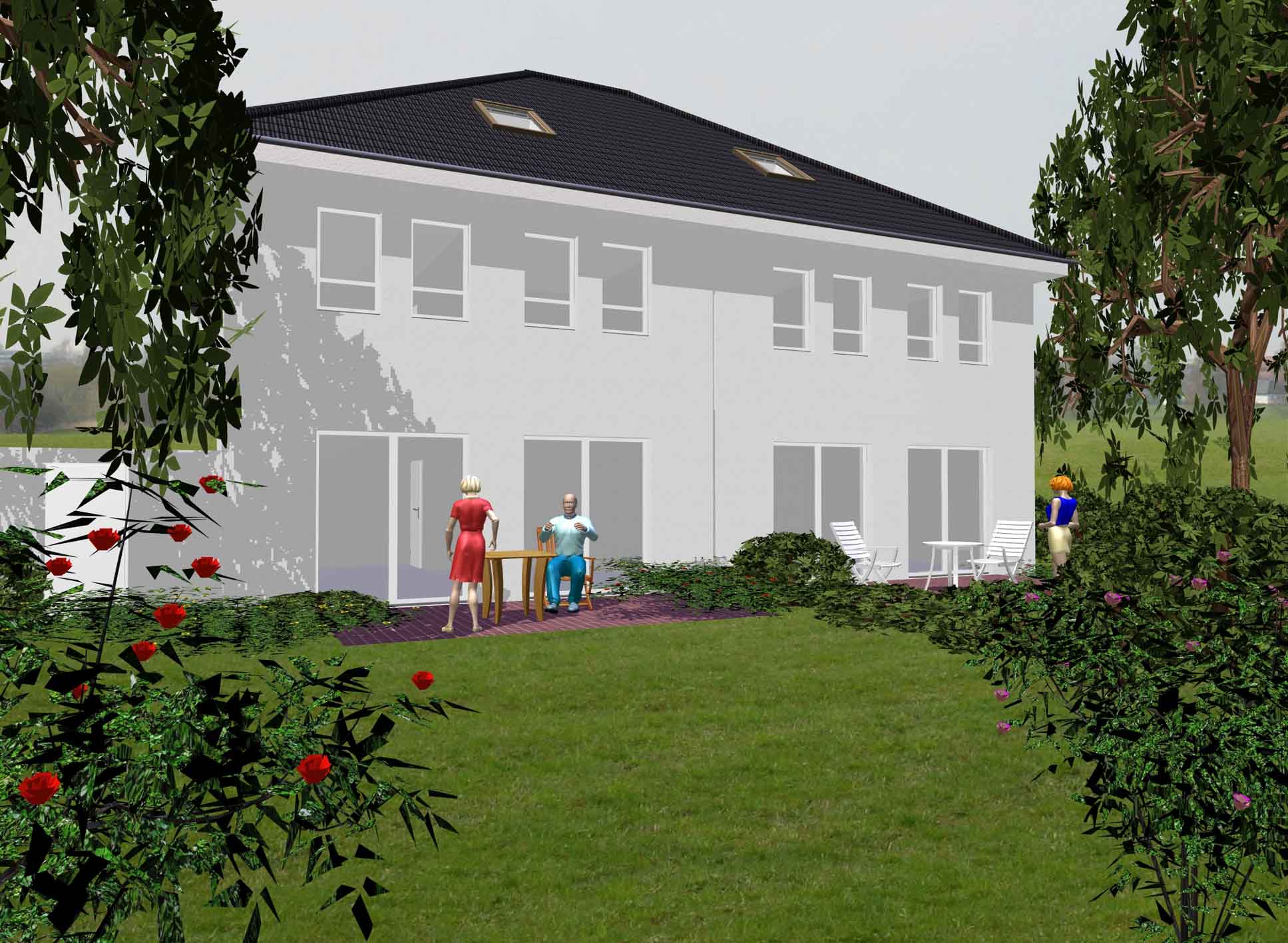 Ansicht Reihenhaus Gartenseite