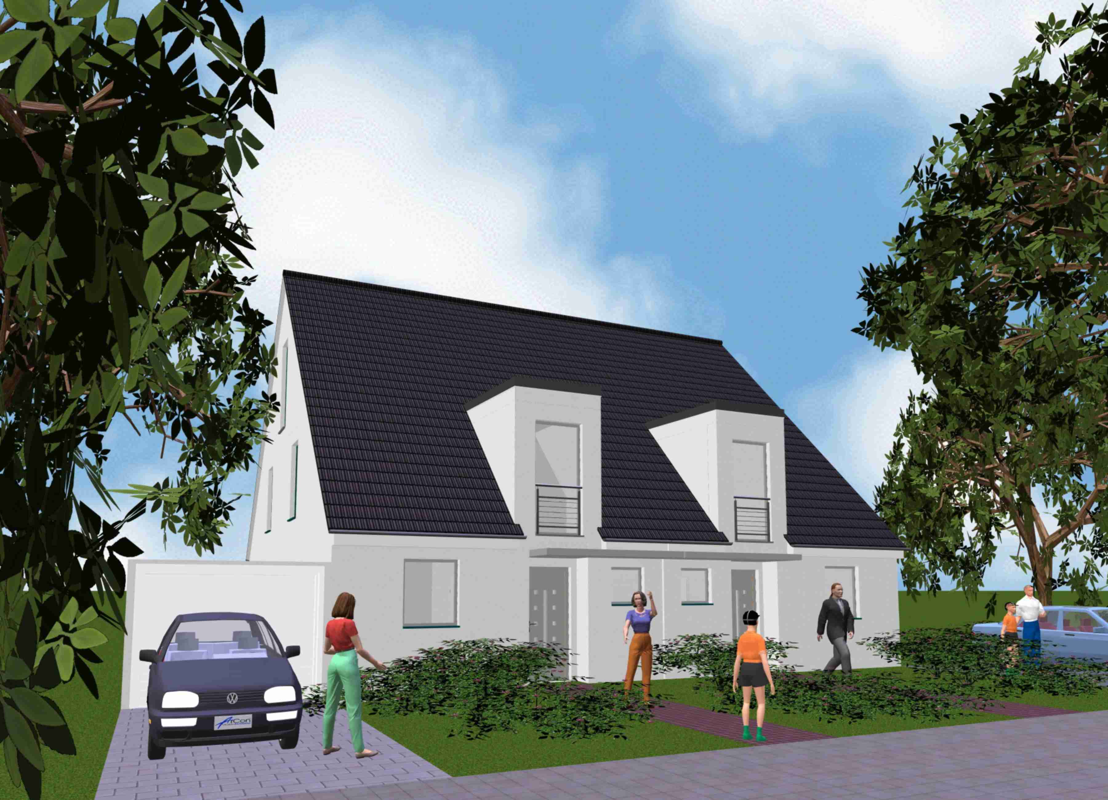 Fertiggestelltes rechtes Haus