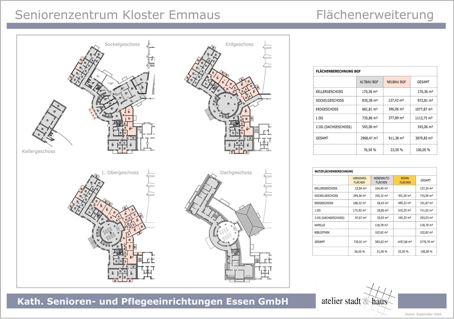 Planung des Umbaus eines historischen Klosters in eine Seniorenwohnanlage mit 48 altengerechten Wohnungen und Nebenräumen, unter Erhalt der historischen Kapelle.