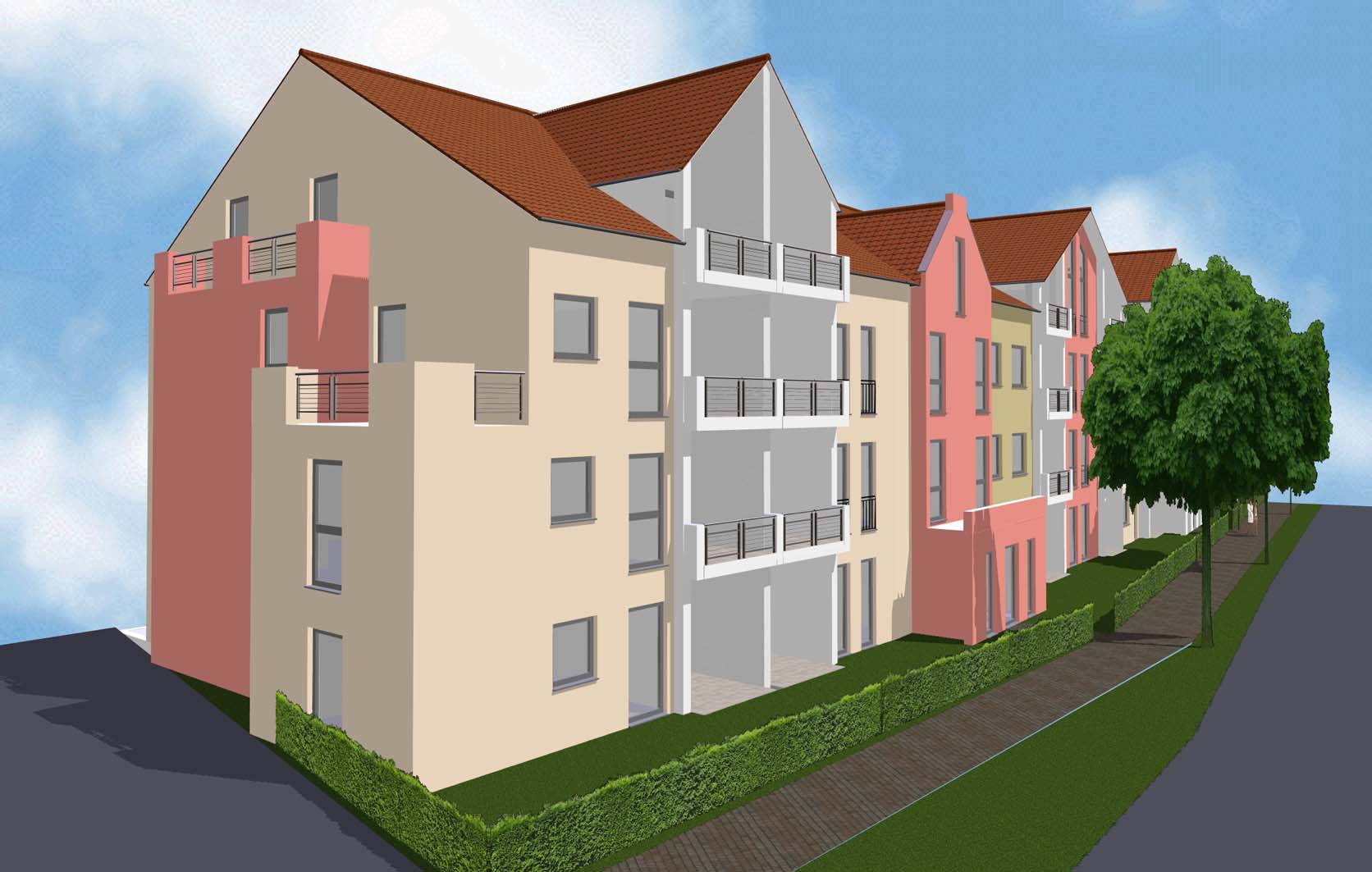 Alle Wohnungen sind als Zweiraumwohungen mit Küchenzeile und überwiegend mit Freisitz ausgeführt.